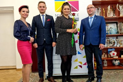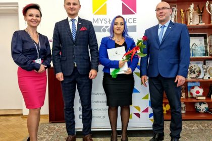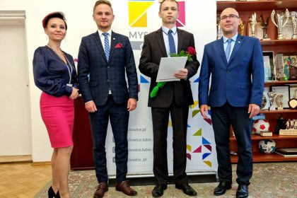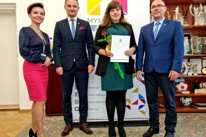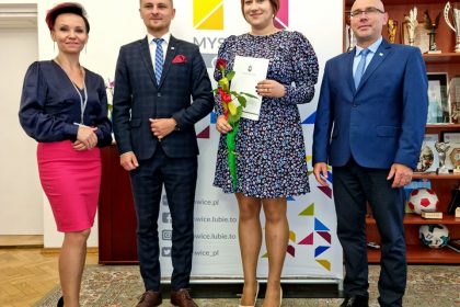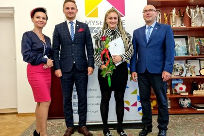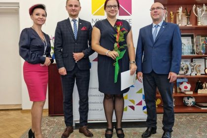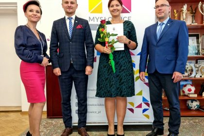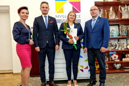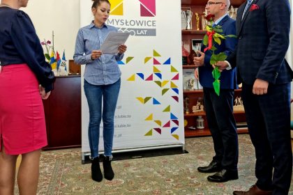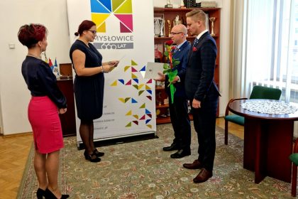 Prezydent Miasta Mysłowice – Pan Dariusz Wójtowicz wspólnie z II Zastępcą Prezydenta Miasta Mysłowice – Panem Mateuszem Targosiem w obecności Naczelnika Wydziału Edukacji – Pani Anity Kukułki przyjął uroczyste ślubowanie i wręczył akty nadania stopnia awansu zawodowego nauczyciela mianowanego 19 nauczycielom zatrudnionym w mysłowickich placówkach oświatowych: