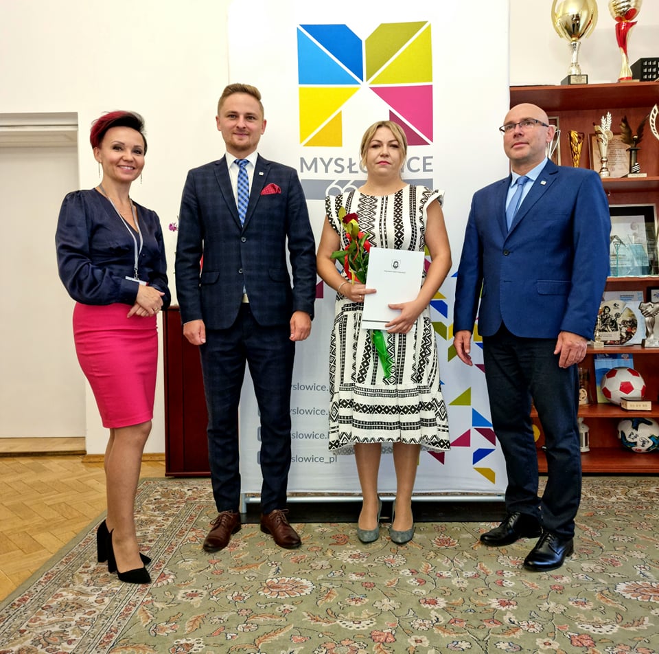 Prezydent Miasta Mysłowice – Pan Dariusz Wójtowicz wspólnie z II Zastępcą Prezydenta Miasta Mysłowice – Panem Mateuszem Targosiem w obecności Naczelnika Wydziału Edukacji – Pani Anity Kukułki przyjął uroczyste ślubowanie i wręczył akty nadania stopnia awansu zawodowego nauczyciela mianowanego 19 nauczycielom zatrudnionym w mysłowickich placówkach oświatowych: