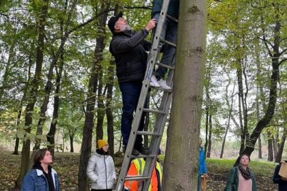 Pomoc w wieszaniu domków dla wiewiórek