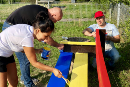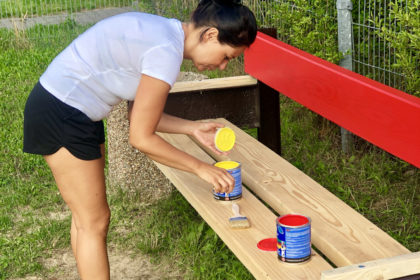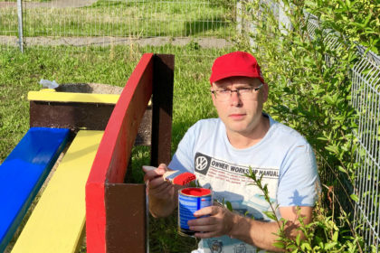 W sobotę, od wczesnych godzin porannych, malowane były ławki na placu zabaw przy ulicy Jodłowej oraz wzdłuż deptaka prowadzącego do ulicy Mikołowskiej.